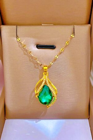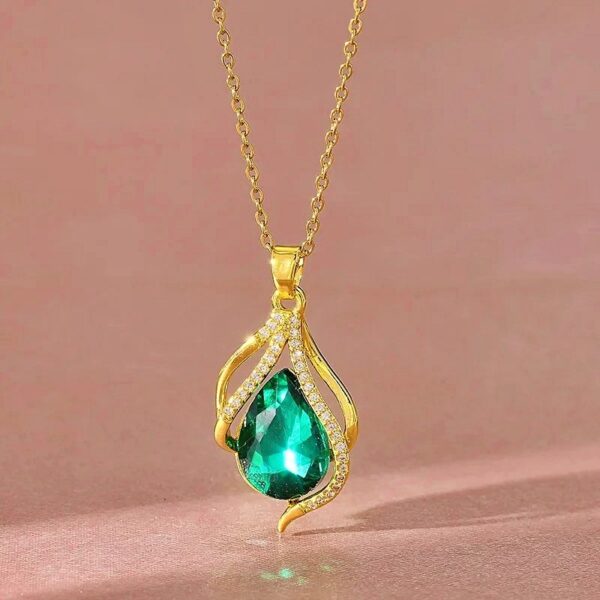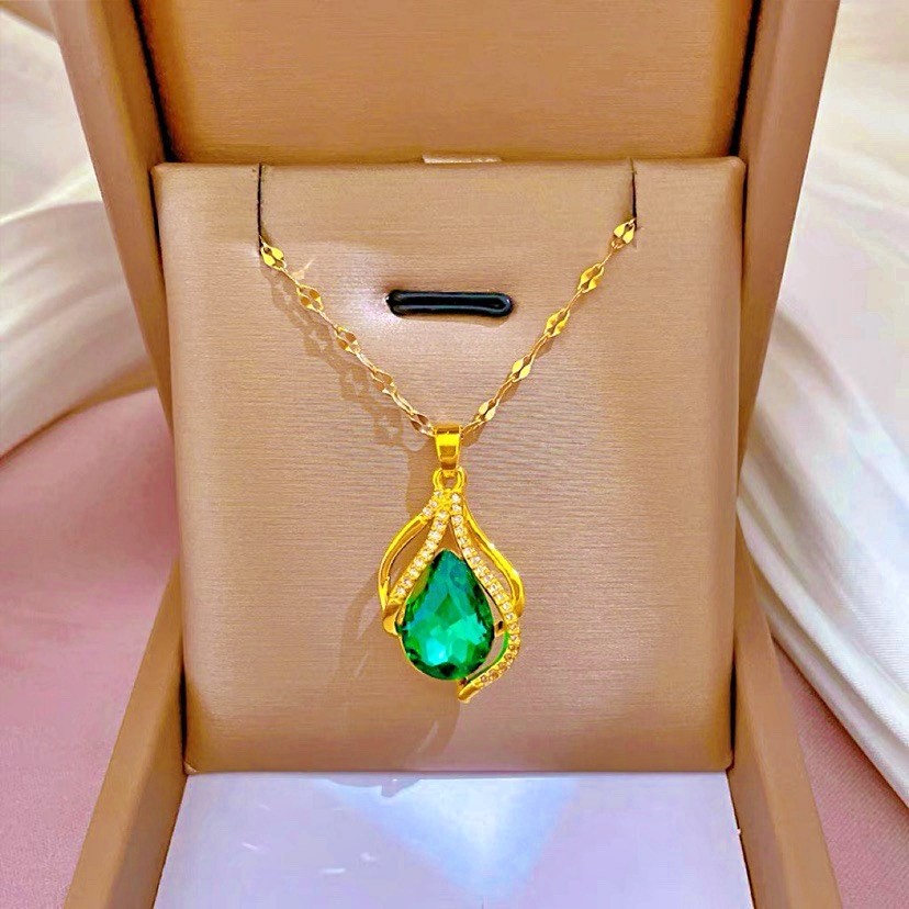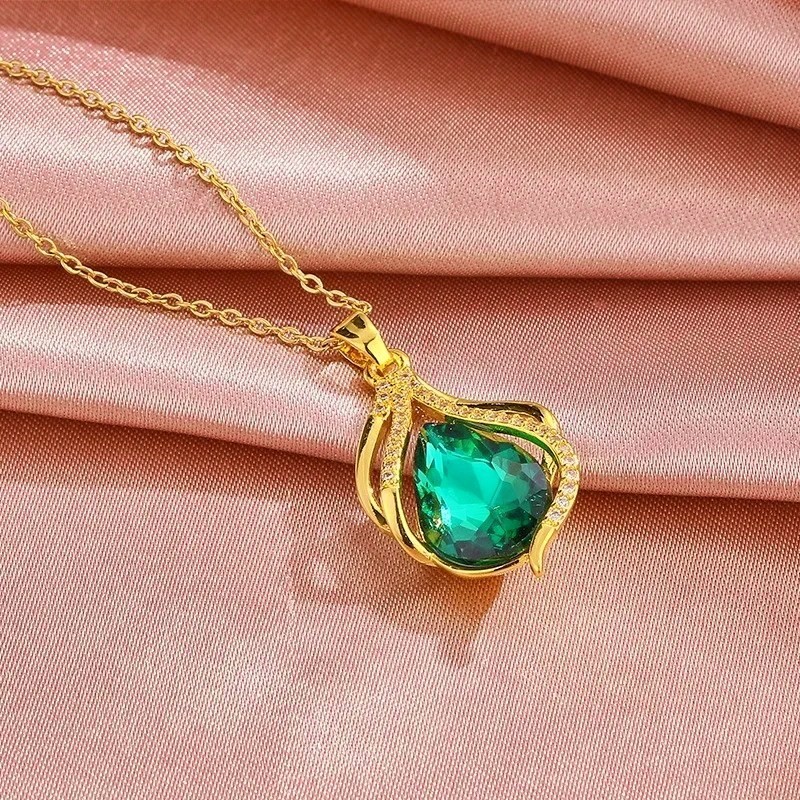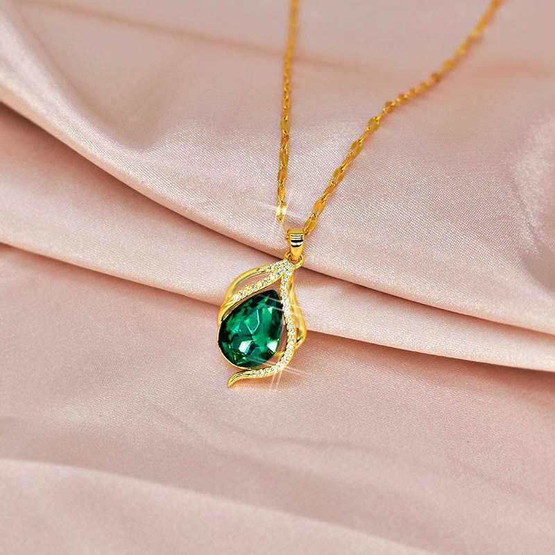 Luxury Green & Purple Water Drop Pendant – Long Lasting Golden Color