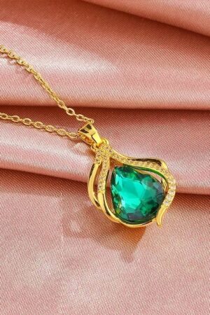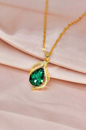 Be the first to review “Luxury Green & Purple Water Drop Pendant – Long Lasting Golden Color”